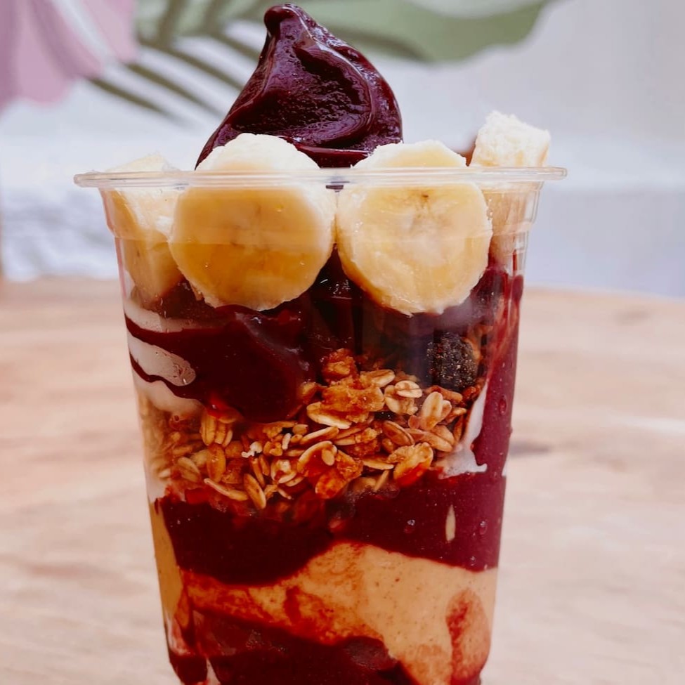 Creme de açaí orgânico, livre de xarope, glúten, corantes e conservantes. Adoçado com açúcar de cana e fibra de laranja. Adicione 3 toppings de sua preferência para mesclar nas camadas. *Os itens vão mesclados no próprio copo, entre as camadas de açaí. Não modificamos a apresentação.