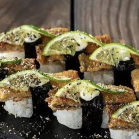 10 niguiri de salmão 10 niguiri skin 10 hot holl com couve Crispy 5 hot holl com Doritos 5 hot holl com alho poro 15 uramaki Filadélfia com batata Crisp,y