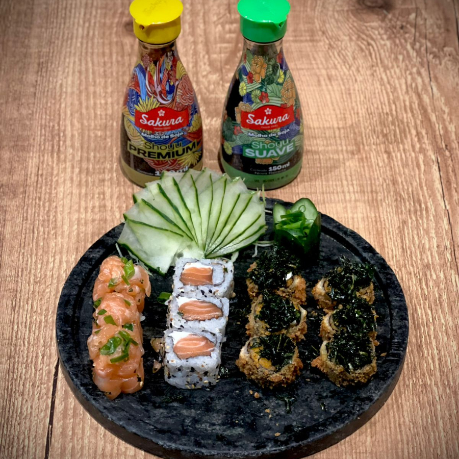 * 6 Hot Rolls * 3 Uramakis de salmão * 3 Jhow de salmão