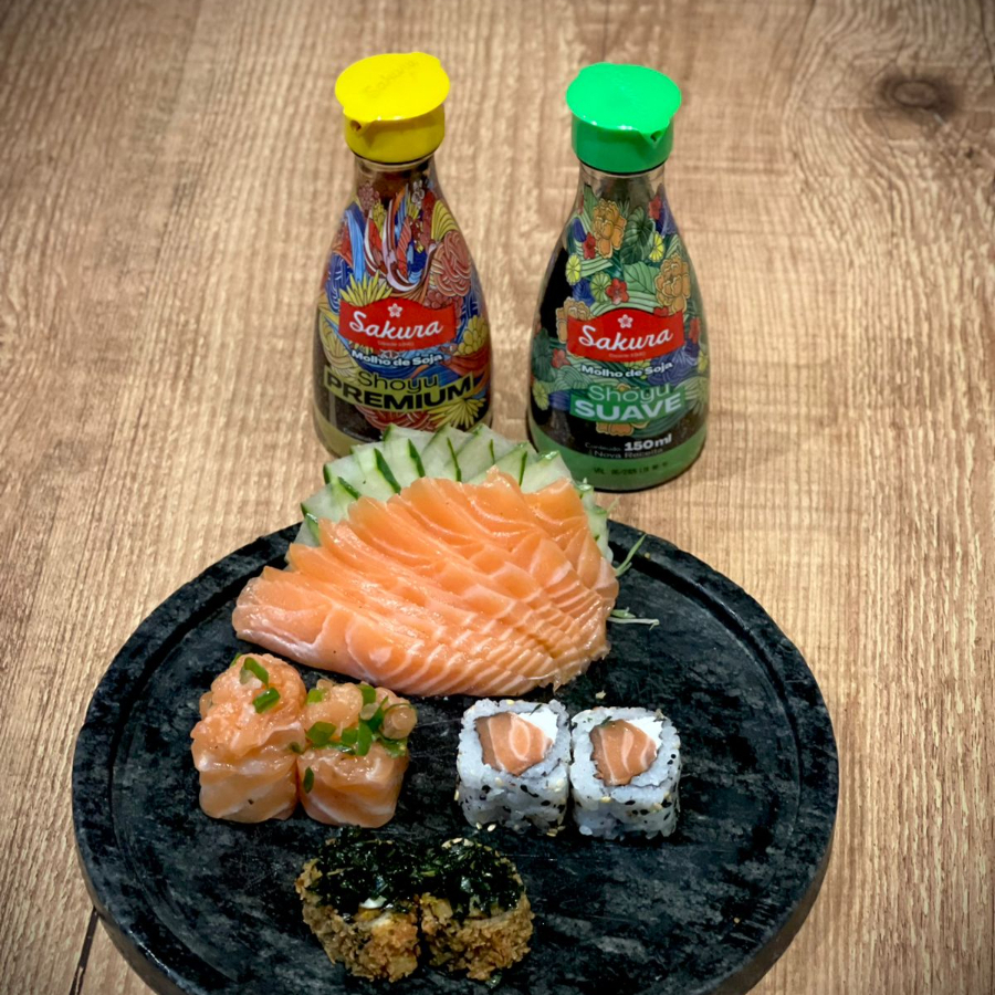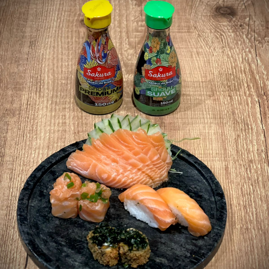 🍣 Combo 3 – Sashimi Lovers * 6 Sashimis de salmão * 2 Niguiris * 2 Jhow * 2 Hot Rolls