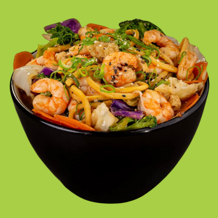 Macarrão yakisoba salteado com acelga, repolho, repolho roxo, cenoura, brócolis e camarões suculentos, envoltos no clássico molho yakisoba. Um prato vibrante, leve e cheio de sabor oriental.