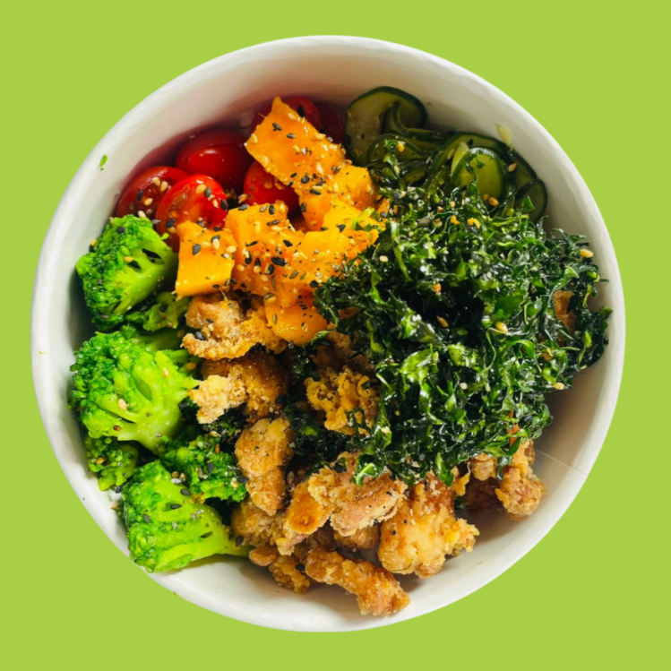 Gohan (arroz japonês) suculentas sobre coxas empanadas e crocantes, molho Korean Chicken, cebolinha fresca, gergelim torrado, nori. Um bowl intenso e cheio de personalidade oriental.