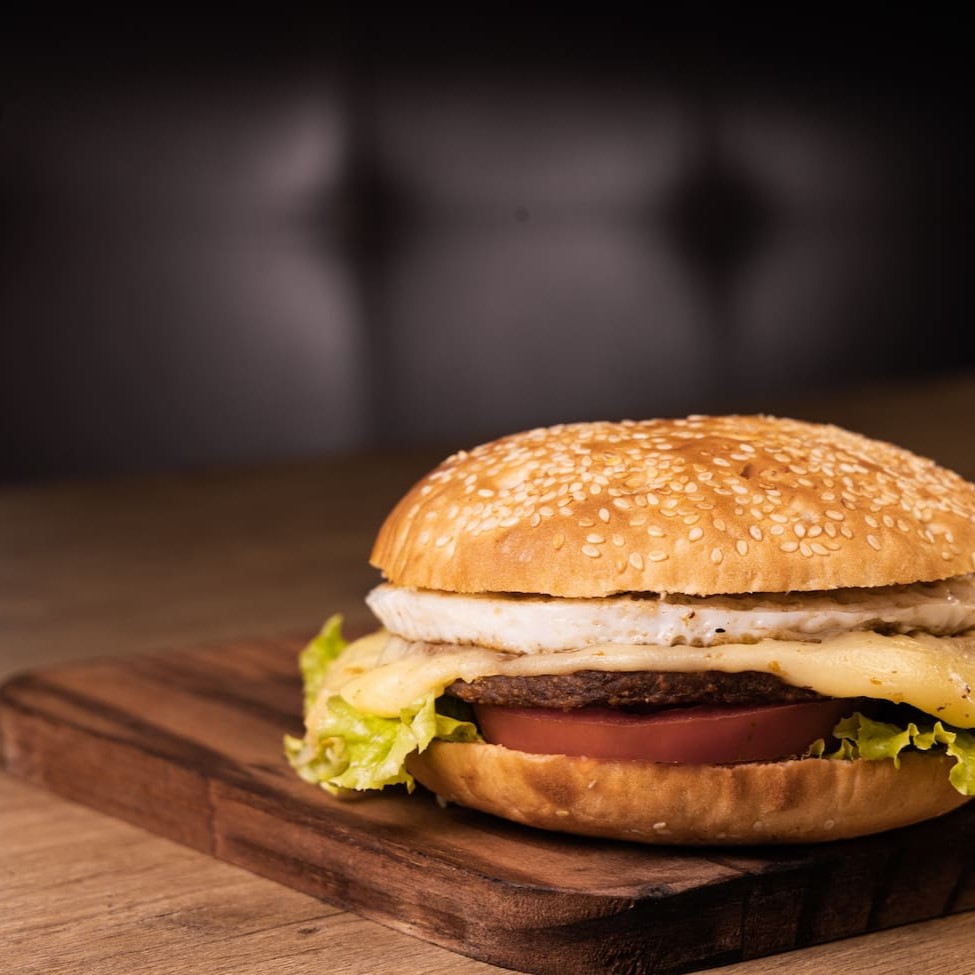 Hambúrguer, queijo, ovo, calabresa, frango, presunto, bacon, maionese e salada.