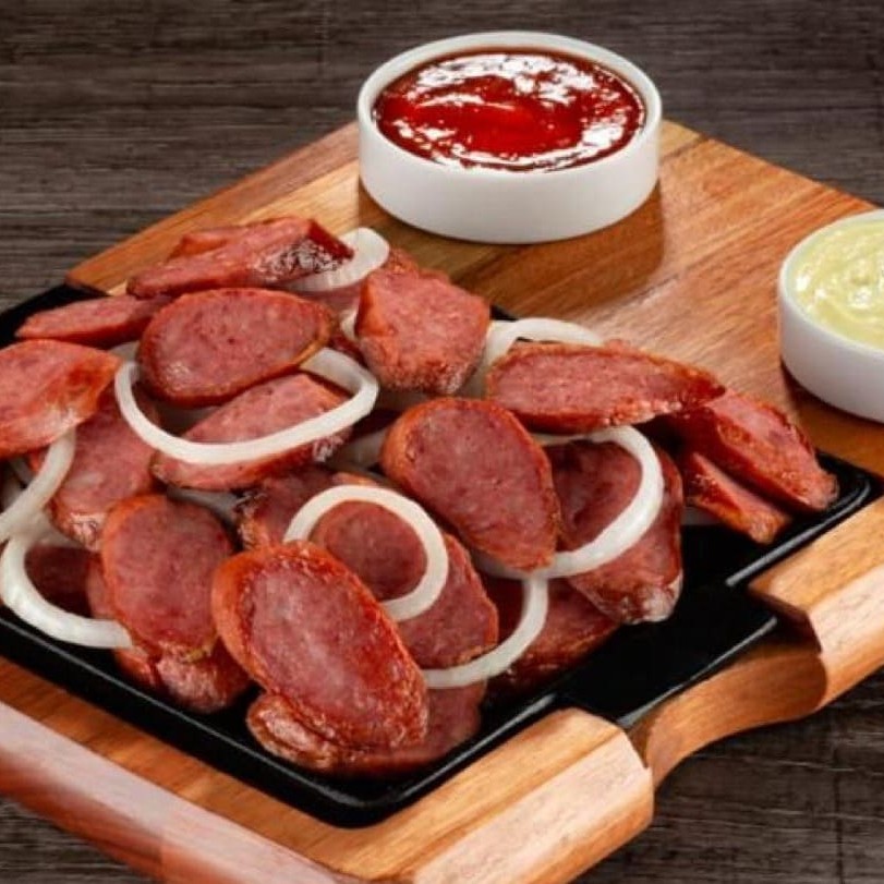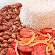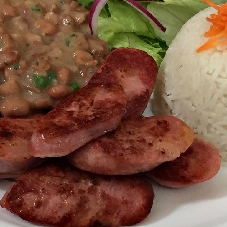 Calabresa Acebolada, Arroz, Feijão E Salada