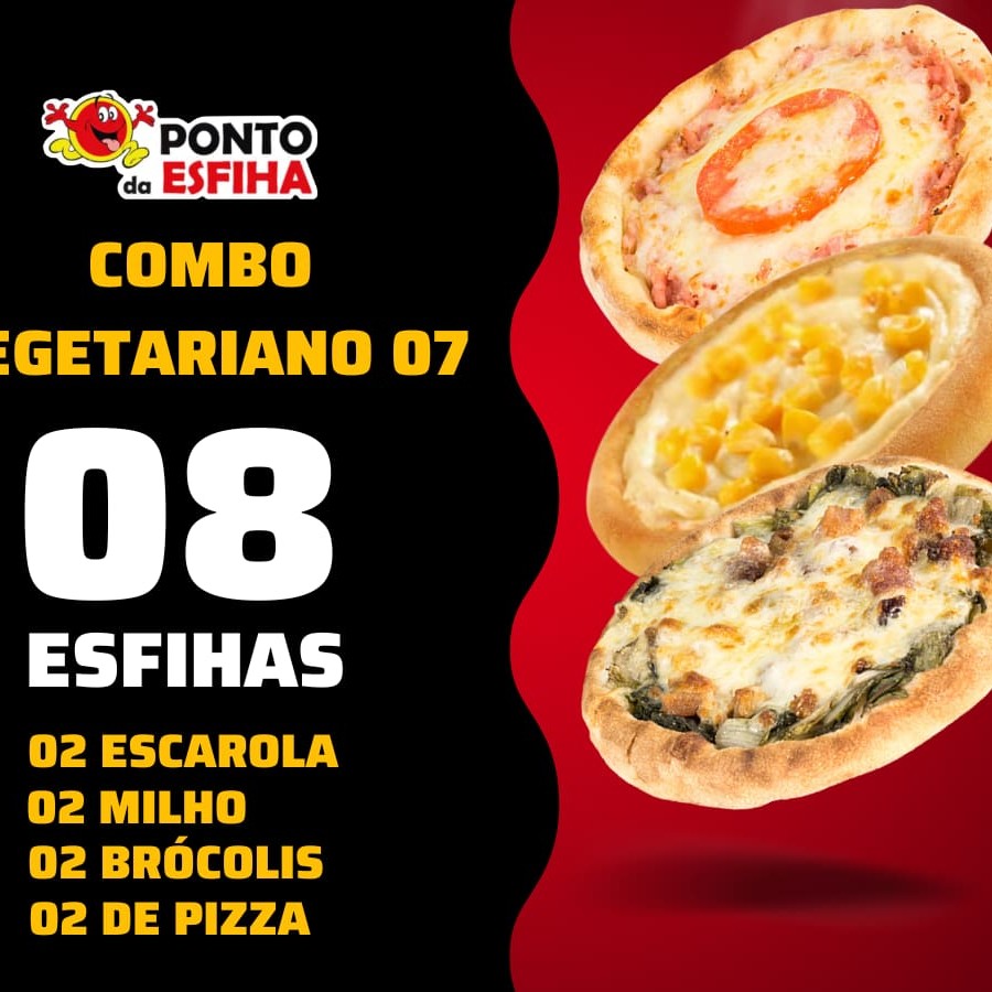 02 esfihas de escarola + 02 esfihas de milho+ 02 esfihas de brócolis + 02 esfihas de pizza