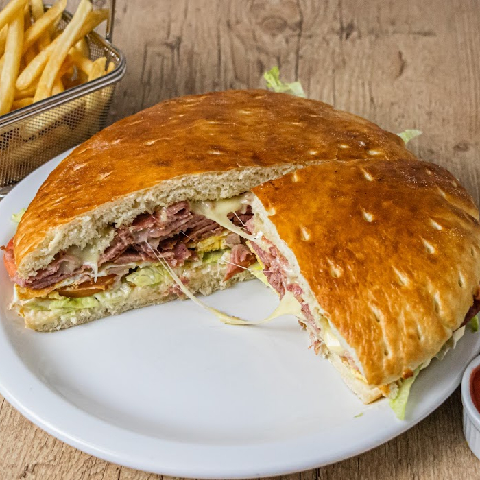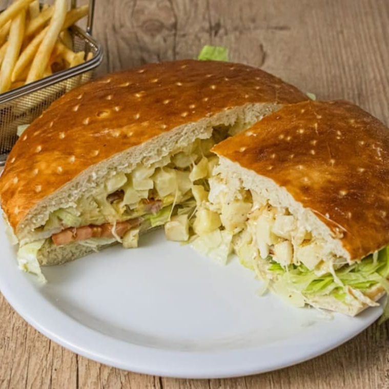 Acompanha: Salada, presunto, ovo, bacon, mussarela, frango desfiado com requeijão. ( não acompanha batata)