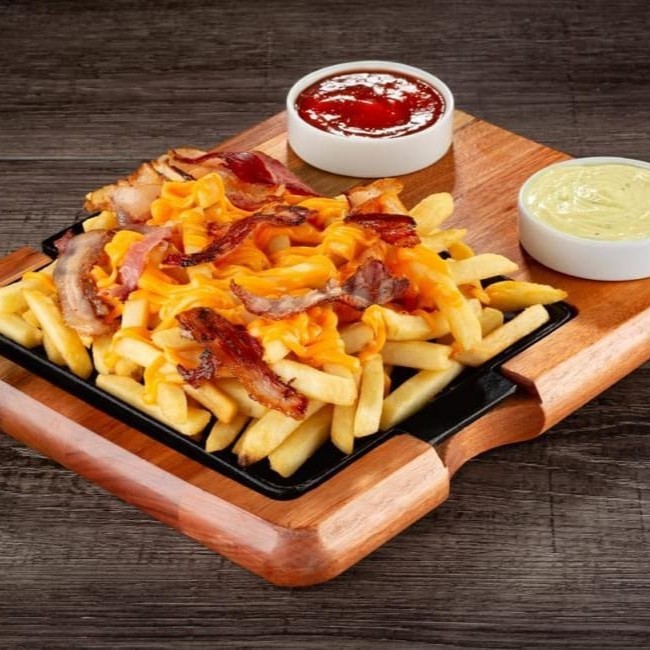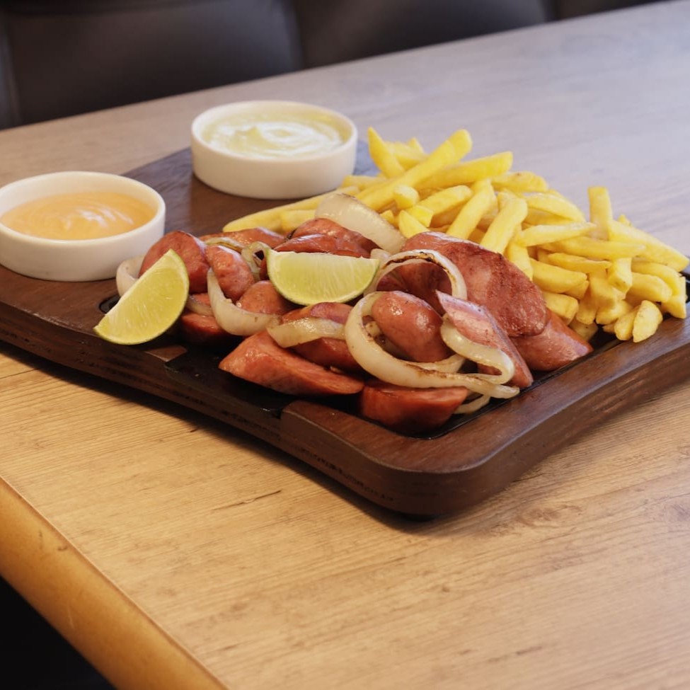 Batata frita e calabresa acebolada, obs. Serve 2 pessoas