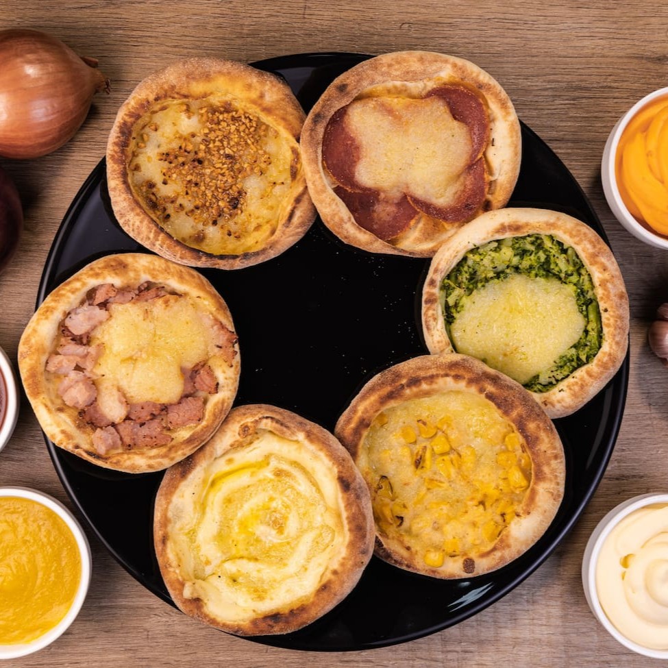 10 esfihas de carne+ 10 esfihas de mussarela+05 esfihas calabresa+05 esfihas de frango Catupiry e 1 coca 2l
