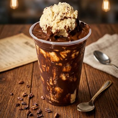 Ferrero Rocher Sorvete no Copo 770ml sorvete, escolha entre varias caldas e se delicia se com esse sorvete cremoso.
