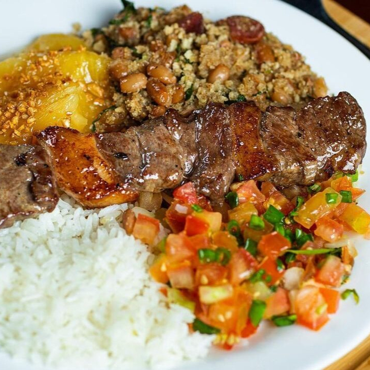 Ingredientes: carne bovina selecionada, linguiça toscana, coração de frango, espeto de frango, linguiça apimenta, tempero especial da casa.