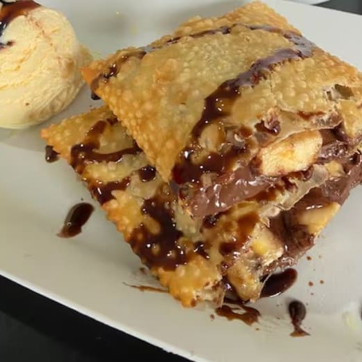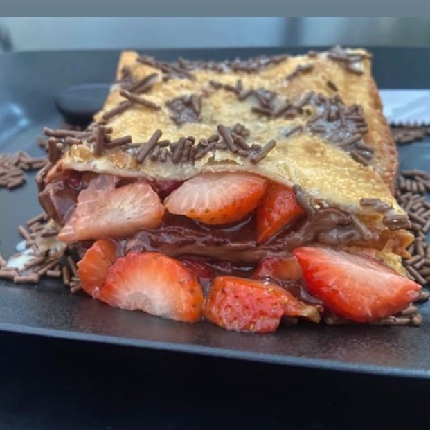 Pastel de 20cm com Nutella Original recheio de ponta a ponta (nao acompanha a bola de sorvete)
