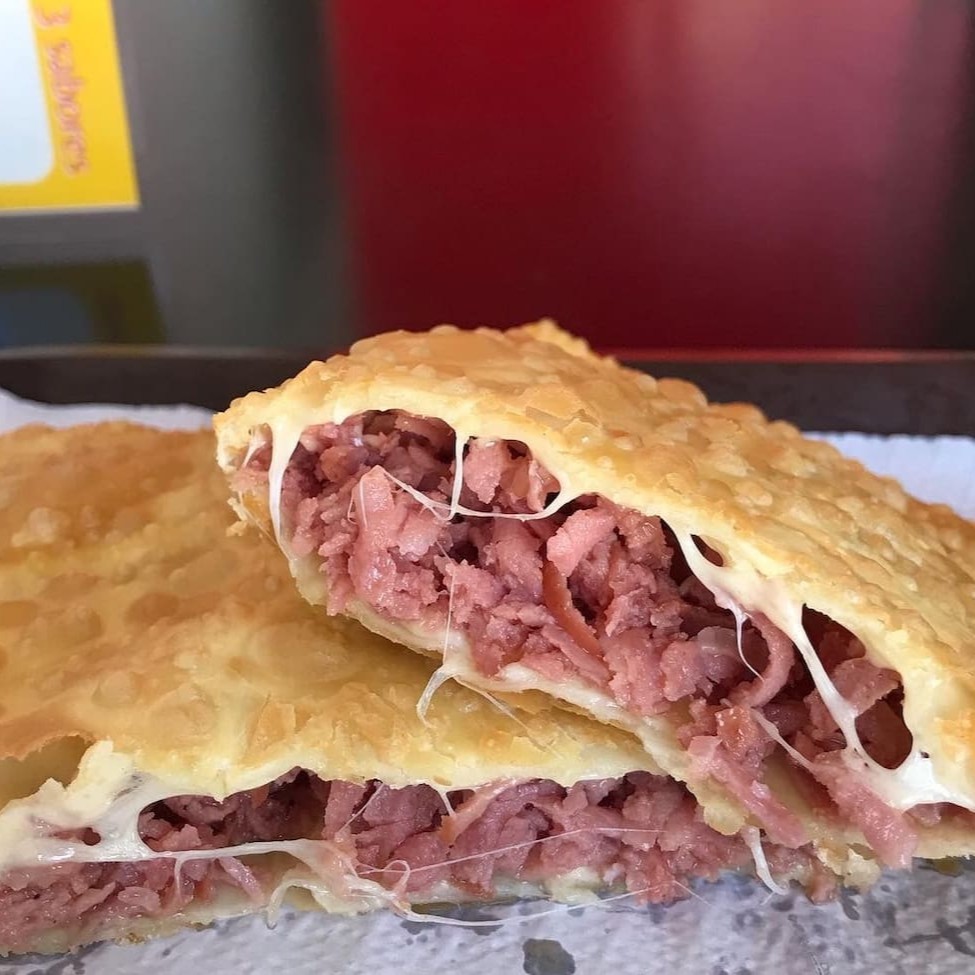 Pastel Tradicional de Calabresa Ralada escolha o tamanho do seu pastel e saboree essa delicia