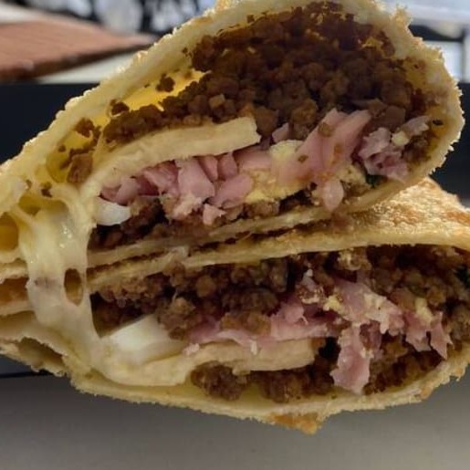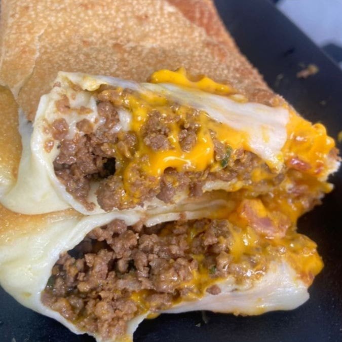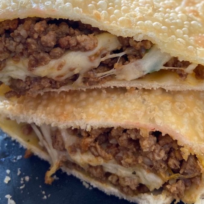 Pastel de Carne moída temperada e queijo muçarela com até 30% Off, pastel super recheado, bem temperado e sequinho, escolha o tamanho do seu pastel de acordo com sua fome