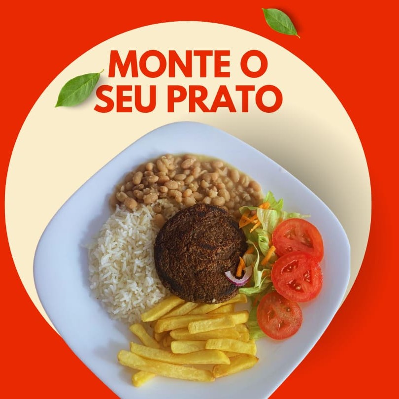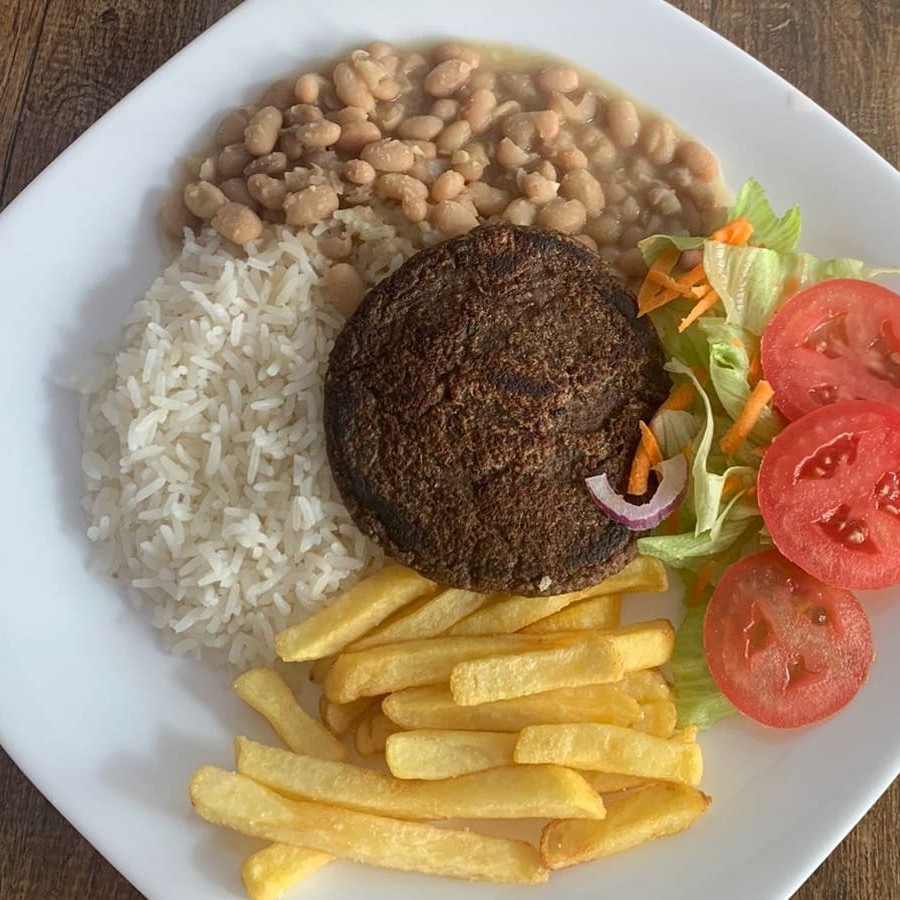 1 unidade de hambúrguer de soja temperada, acompanha arroz, feijão, batata frita e salada <3