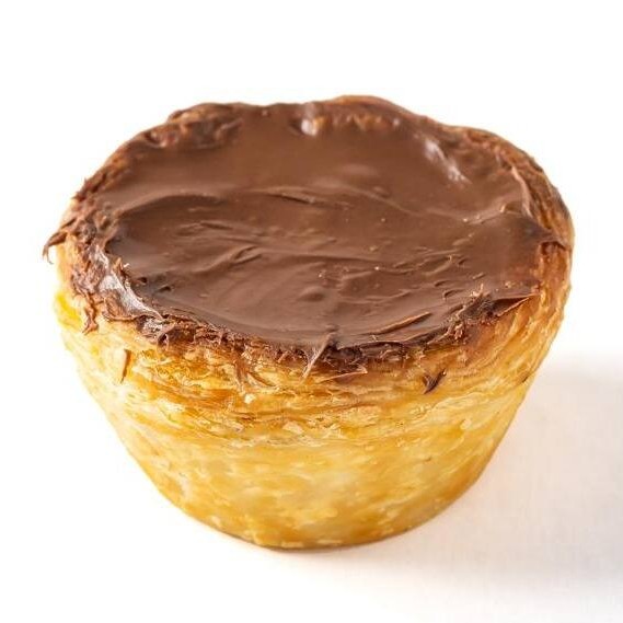 Pastel de nata com creme de avelã e chocolate Nutella. Obs: este item pode chegar avariado por possuir cobertura.