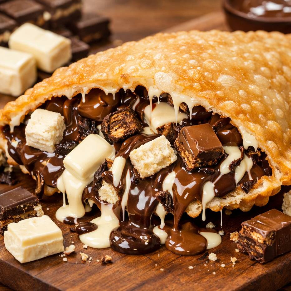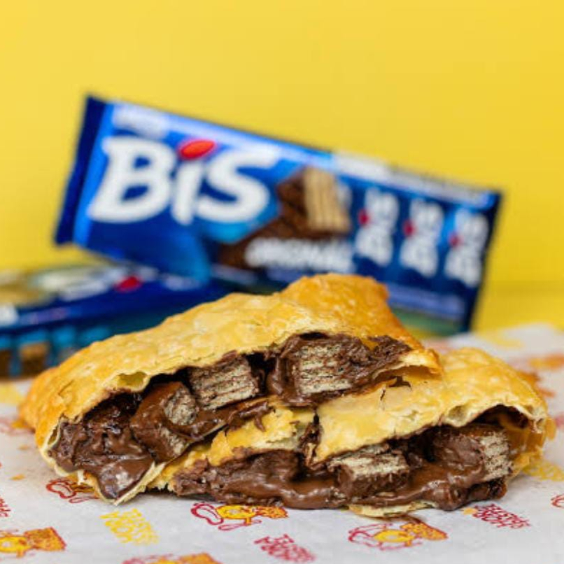 Recheio: Chocolate preto cremoso e pedaços de Bis preto.