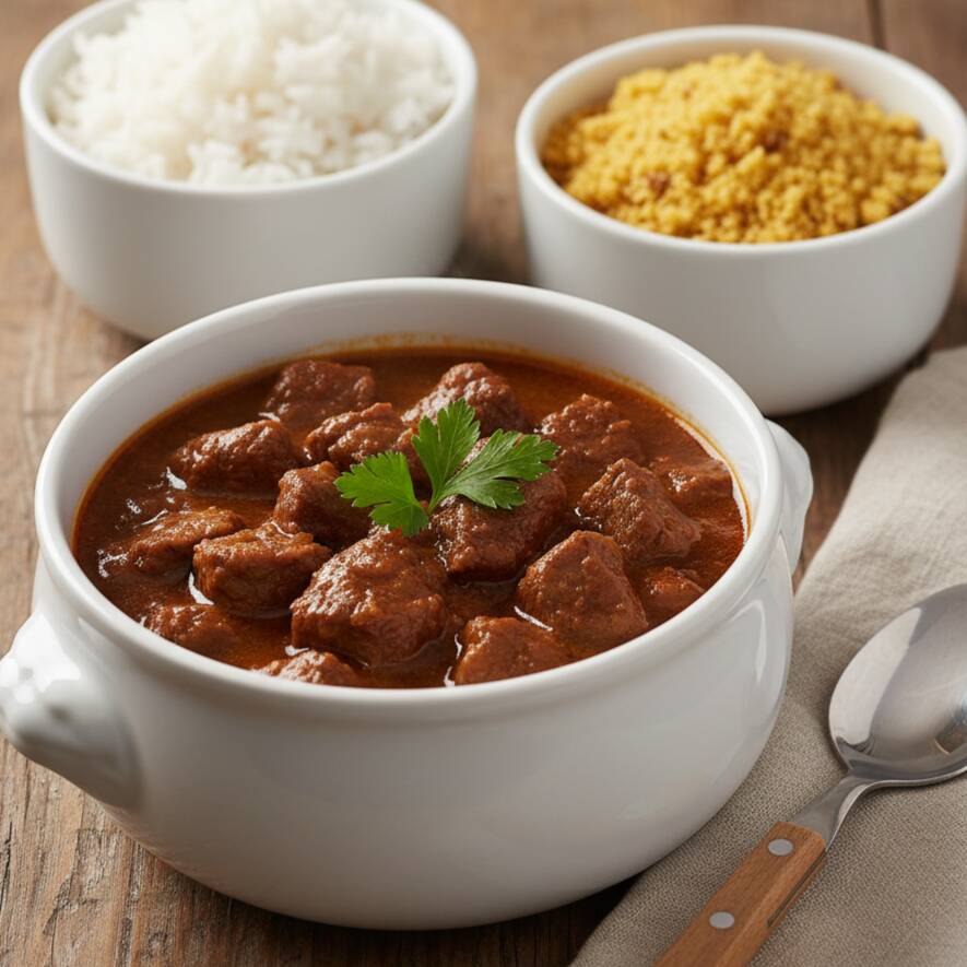 Maminha cozida lentamente, com arroz e farofa da casa.