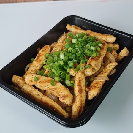 Tiras de filé de frango acebolado para acompanhar sua porção