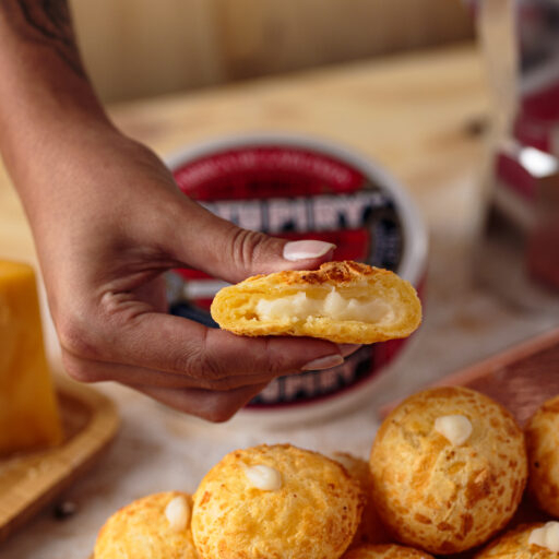 Pão de Queijo feito com os melhores queijos. Aquela receita da Vovó e Recheado com Catupiry Aprox. 120g (4 bolinhas)