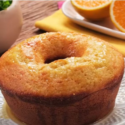 Bolo de Laranja caseiro e molhadinho com calda de laranja e Baunilha