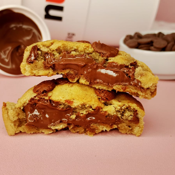 Cookie com massa artesanal com gotas de chocolate nobre ao leite e recheado com muita Nutella. Assados na hora. Para uma experiência melhor, consumir morno. ---------- tags --------- Cookies , cookies recheados , doces , sobremesas , 0800 , grátis , chocolate , Ninho com Nutella , morango , Prestígio , coco , sensação , bolo de pote , copo da felicidade , cone , brownie , brawnie , brauni , trufa , geladinho gourmet , açaí , acai , assai , donut , coxinha , frango , costela , cream Cheese , carupiry , requeijão, risole , mini salgado , esfiha , coca , refrigerante , desconto , promoção , promocao , coxinha de morango , bombom de morango , bombom de uva , Kinder Bueno , Ferrero Rocher , red Velvet , pistache , espetinho
