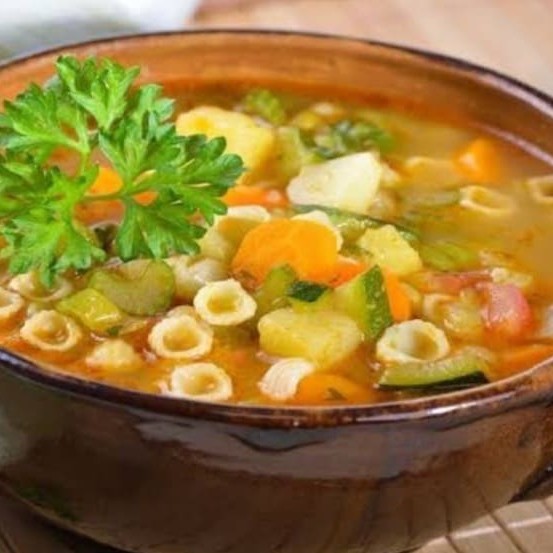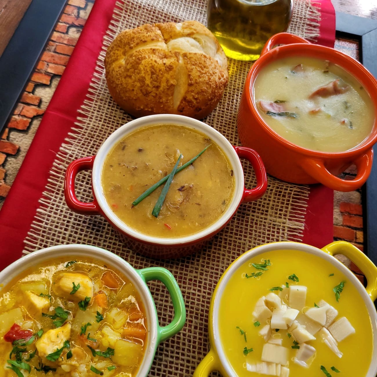 Nossa irresistível sopa de legumes leva em seu preparo macarrão, cenoura, xuxu, batata doce, mandioquinha e batata, além de carne, garantindo qualidade e sabor inigualáveis. Acompanha torradas •Feita com molho caseiro!