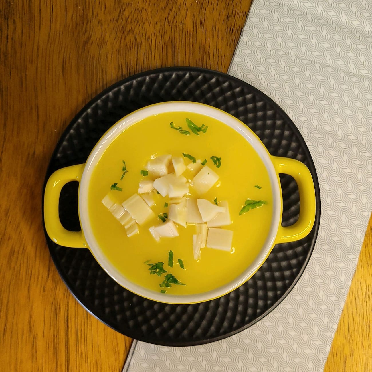 Experimente nosso delicioso creme de mandioquinha com palmito! Acompanha torradas Feito com ingredientes frescos e selecionados... Rico em nutrientes e muito saboroso.