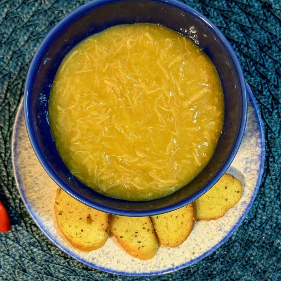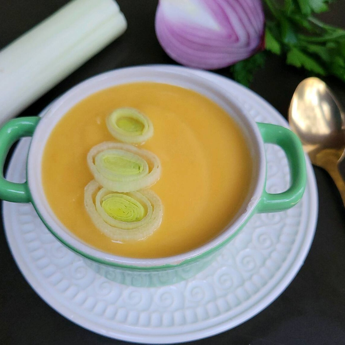 •Delicie-se com nosso Caldo de Mandioquinha com Alho-Poró! Acompanha torradas •Uma combinação perfeita de mandioquinha cremosa e o sabor suave do alho-poró. •Feito com ingredientes frescos e sem conservantes, esse caldo é uma opção saudável e saborosa. Perfeito para uma refeição leve e nutritiva.