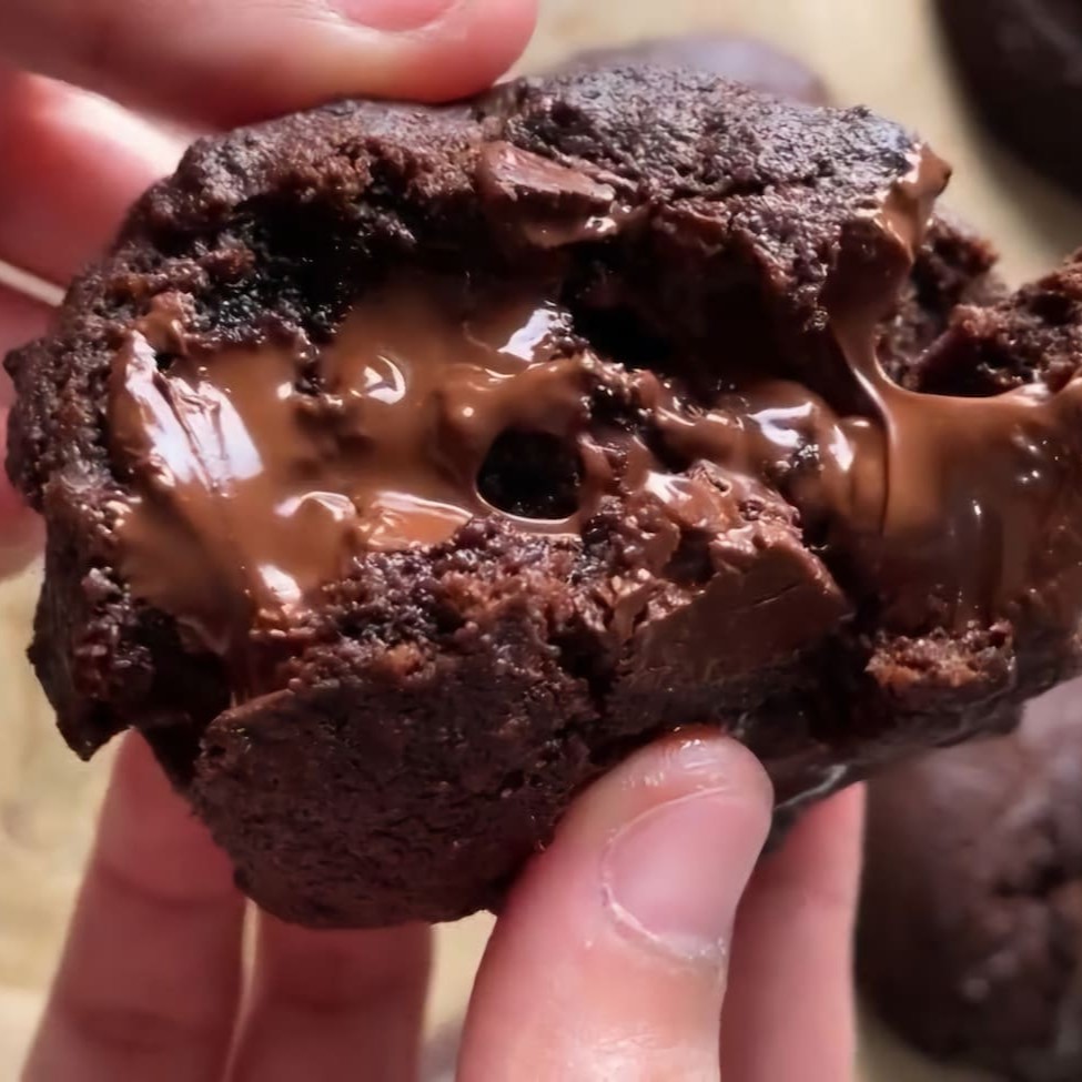 Massa de chocolate (feito à base de cacau 70%) com gotas de avelã recheado com Nutella.