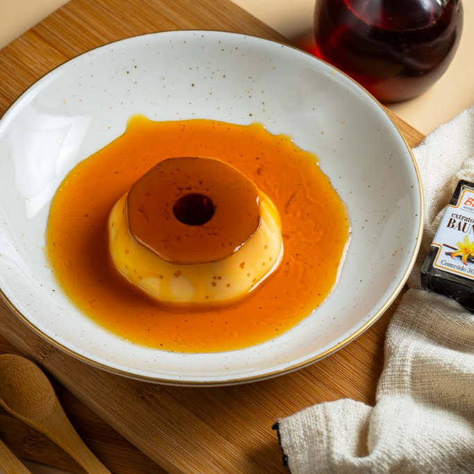 Um clássico sofisticado em tamanho família! Nosso pudim de Baunilha 650g é feito com fava de baunilha natural, trazendo aroma envolvente, sabor delicado e textura cremosa que derrete na boca. Assado com carinho e entregue na própria forma, pronto para servir, com calda de caramelo artesanal que realça o sabor e a experiência gourmet. Ideal para compartilhar em família ou em ocasiões especiais. Serve de 5 a 6 pessoas