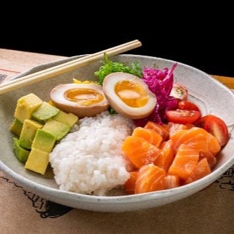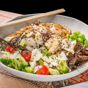 Clássico peruano chinês, de arroz frito, macarrão chinês, ovo mexido, legumes, filé de frango (180 gr), laqueado em molho teriyaki.