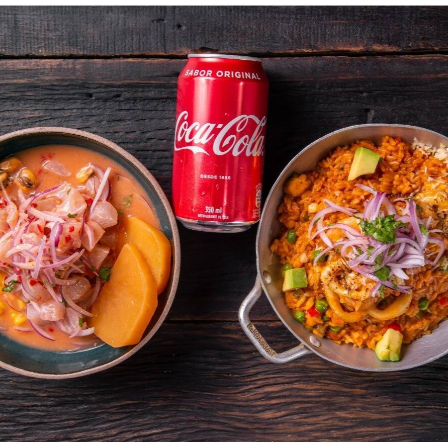 Arroz com frutos do mar + ceviche clássico 90 gr + 1 refrigerante (lata) de sua escolha: coca cola, Guaraná, Guaraná zero.