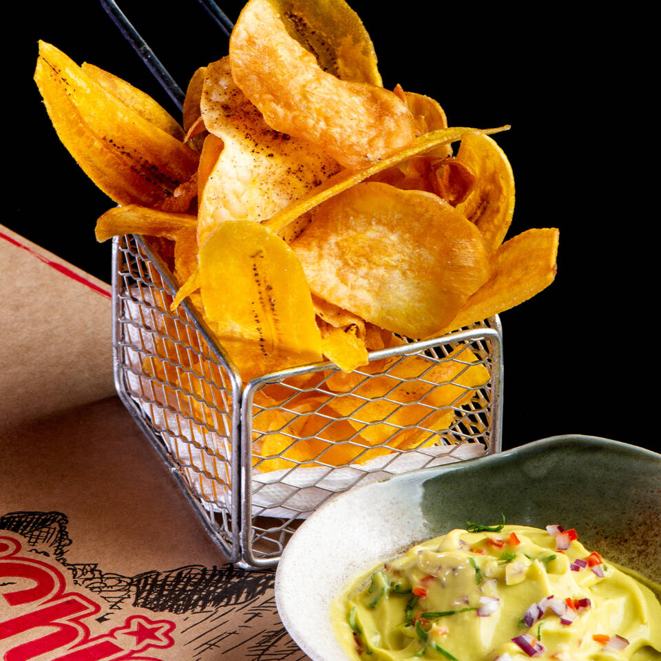 Chips atesanais. Acompanha de guacamole.