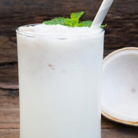 60ml de leite de coco, 60ml de leite condensado, 40ml de creme de leite Coco ralado e 100ml de vodka e Gelo