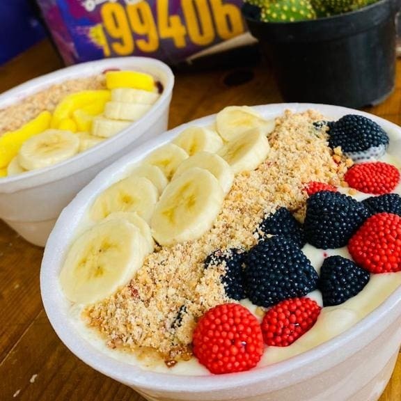 Tudo que há de mais incrível, em 2 super tigelas! Ideal para compartilhar. Nas tigelas pode ser acrescentado grátis 1 opção de açaí e 1 sorvete + 2 complementos + 1 fruta + 1 calda. Você ainda tem a opção de turbinar sua tigela com complementos a parte em um pote de 80ml.