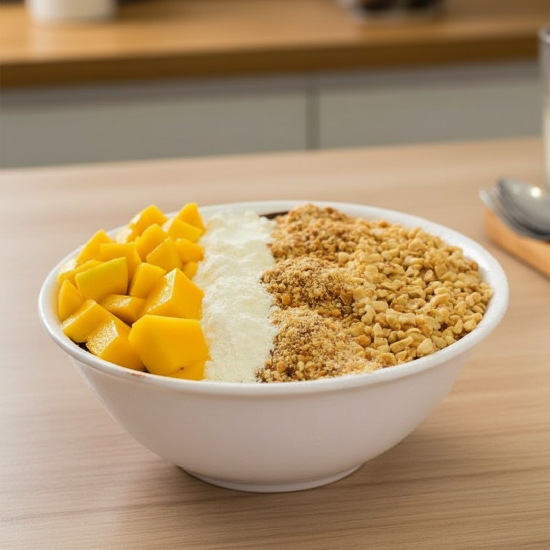 Imagem Meramente Verdadeira, são 770 ml de Pura Delicia dentro dessa tigela, você não vai perde não é mesmo? Uma explosão de sabor. Acrescente 1 opção de açaí e até 2 opções de sorvete, 3 de complementos, 1 calda e 1 fruta. Para finalizar essa maravilha, vc pode turbinar seu copo com complementos a parte em um pote de 80 ml separadamente. Ideal pra almoço, lanche e jantar, peça logo nosso queridi