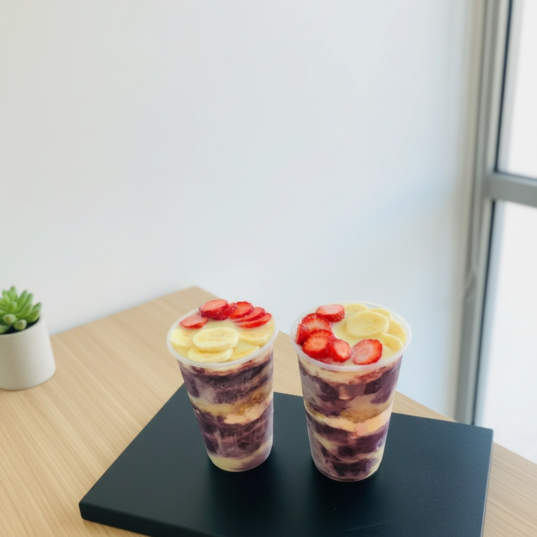Um clássico muito bem executado, depois desse não vai conseguir parar de pensar na gente! Para deixar seu Dia ainda mais refrescante monte seu copo acrescentando 1 opção de açaí e sorvete, 1 de complemento, 1 calda e 1 fruta. Para finalizar essa maravilha, vc pode turbinar seu copo com complementos a parte em um pote de 80 ml separadamente. Ideal pra almoço, lanche e jantar, peça logo nosso queri