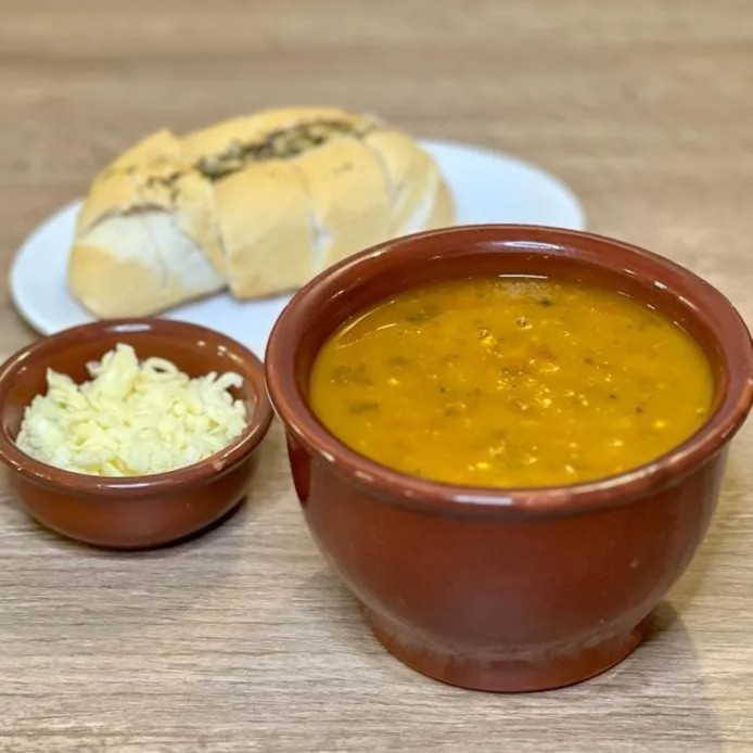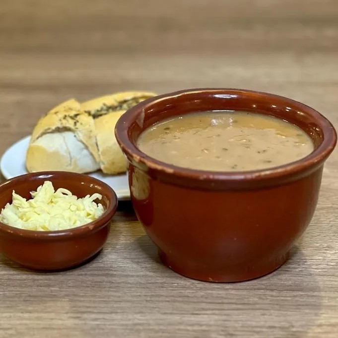 Escolha até 3 sabores de caldos para compor seu trio. (240ml cada) Acompanha pão e queijo