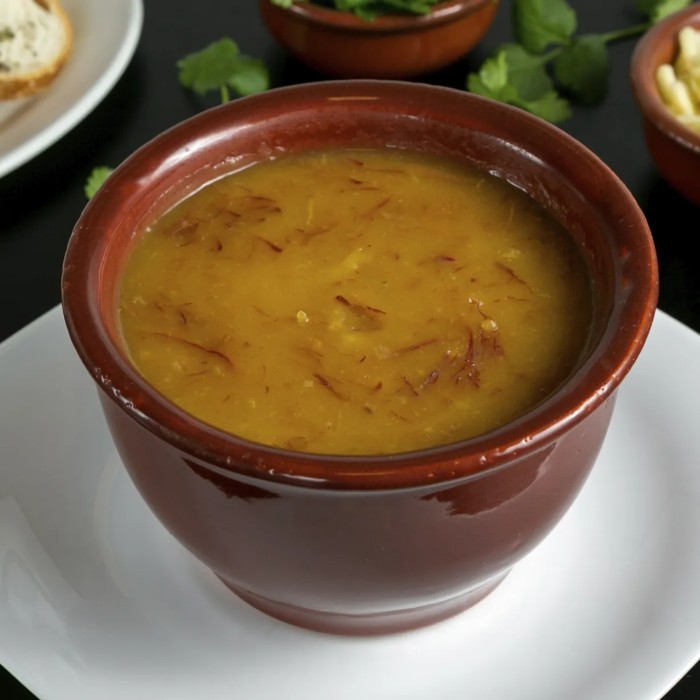Caldo de abóbora com carne seca, acompanha pão e queijo mussarela. (500ml)