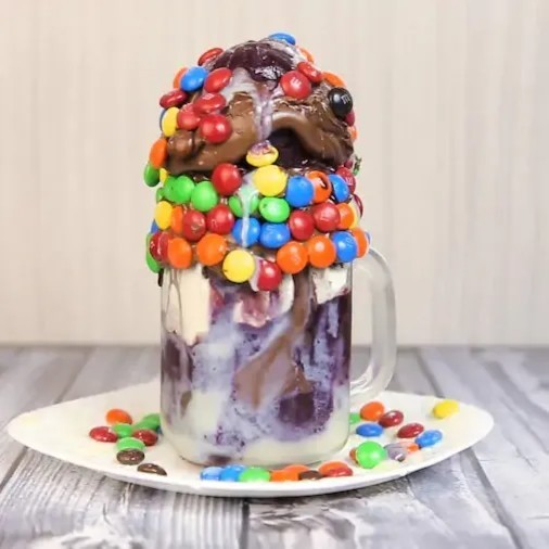 Chocolate M&M's, leite condensado, leite em pó e Nutella.