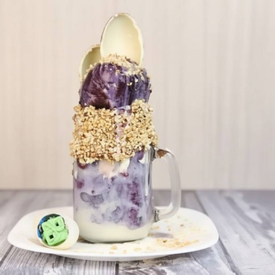 Chocolate Kinder Ovo, leite condensado, leite em po, Nutella e amendoim triturado.
