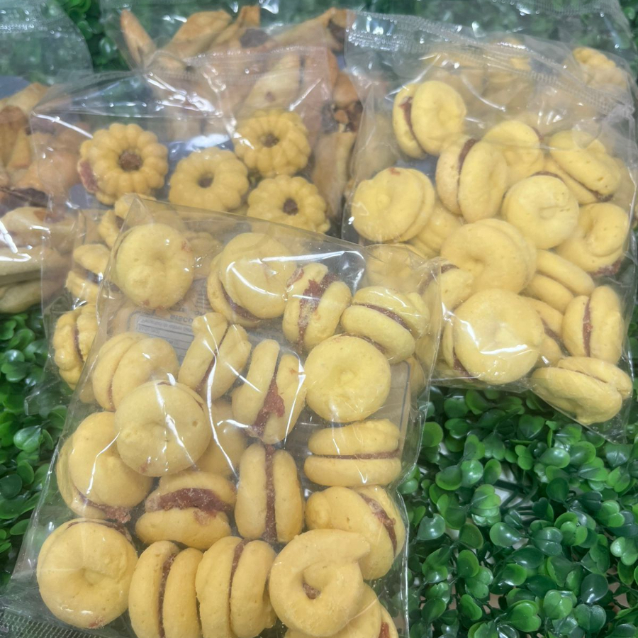 BISCOITO DOCE DE AMIDO DE MILHO, SABOR LEITE CONDENSADO RECHEADO COM GOIABADA 180 GRAMAS
