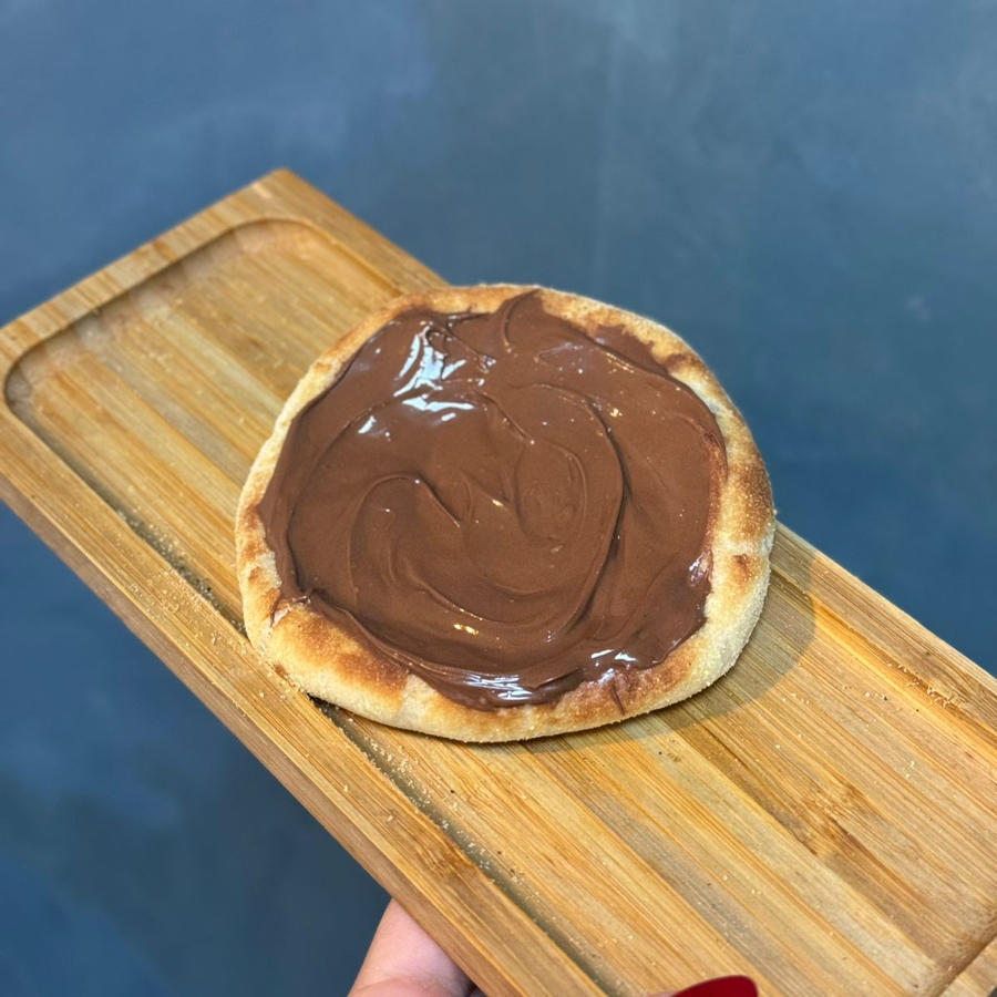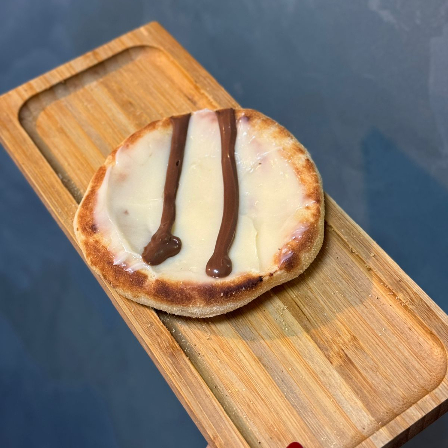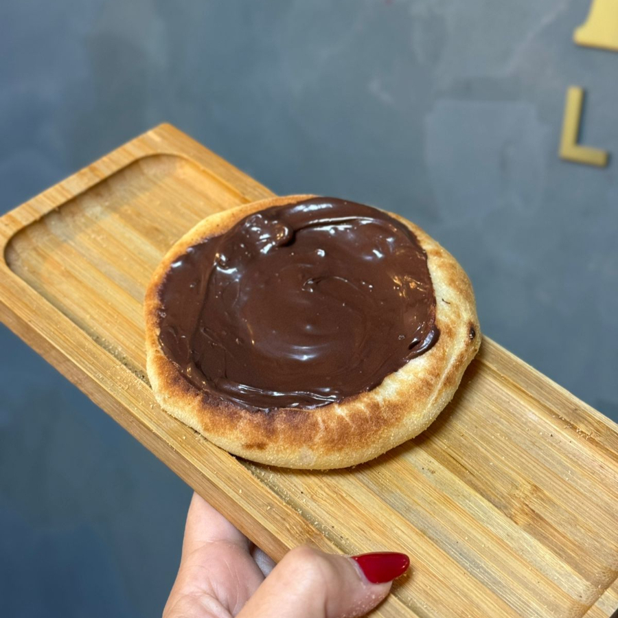 Esfirra doce com uma generosa cobertura de Nutella em base de queijo. Massa de longa fermentação, porção de aproximadamente 70 g.