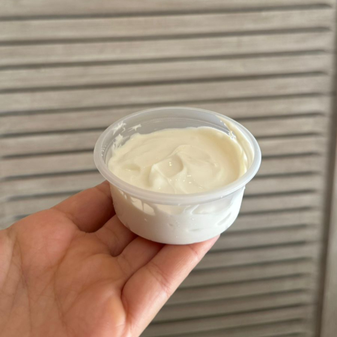 Receita clássica da comida árabe, coalhada levemente azeda, perfeita para acompanhamento ou para comer com pão sírio. Porção individual de aproximadamente 70 g.