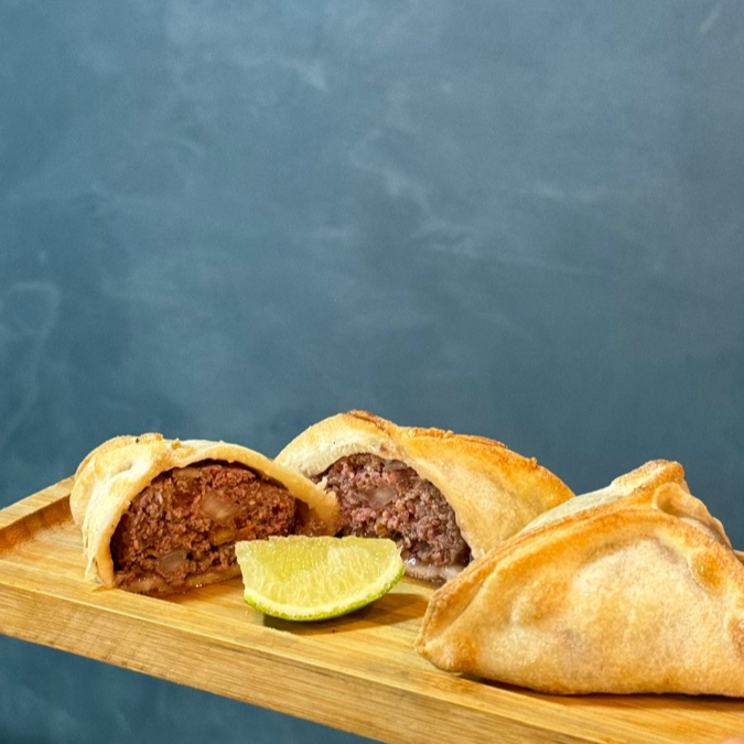O carro chefe da casa. Esfirra feita com massa de longa fermentação, carne de verdade, tempero típico libanês. Porção de aproximadamente 80g.