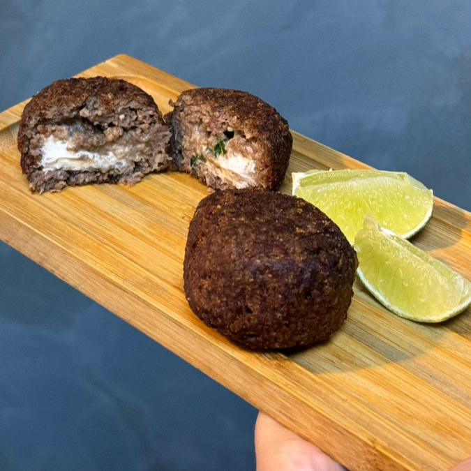 Massa crocante de carne envolve a nossa mistura de requeijão cremoso e queijo muçarela com uma pitada de salsa. Unidade de aproximadamente 60g.