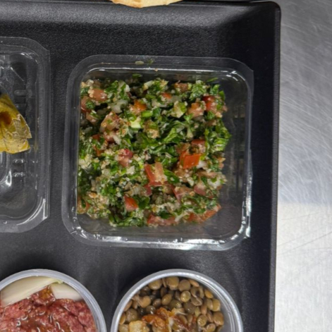 Salada tradicional árabe, com trigo, tomate, cebola e salsa picada. Porção individual 70g.