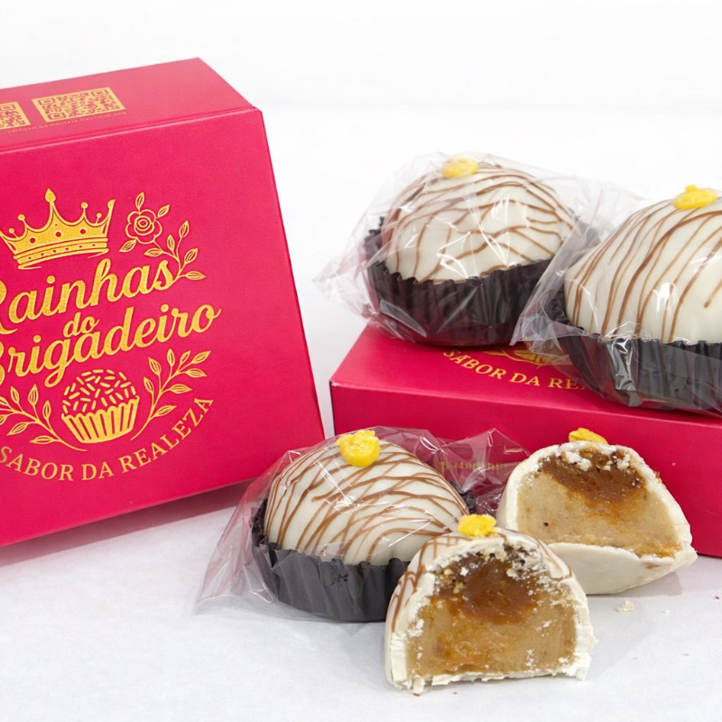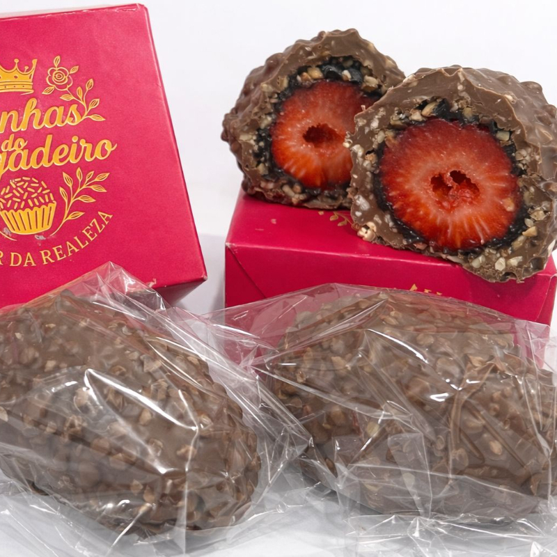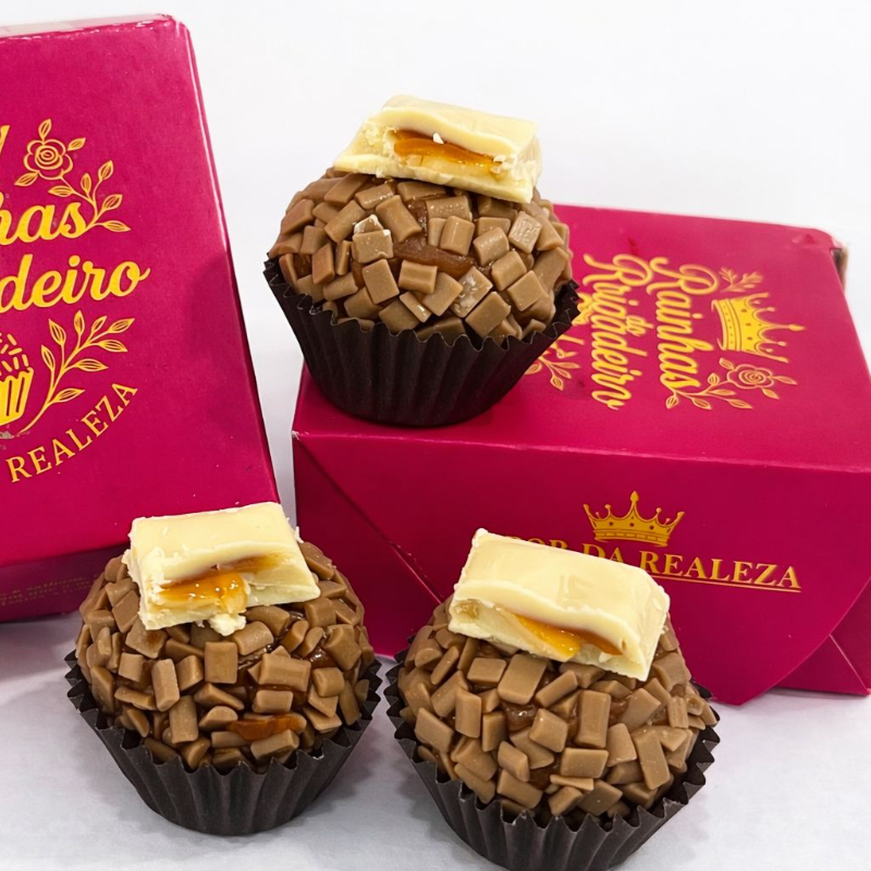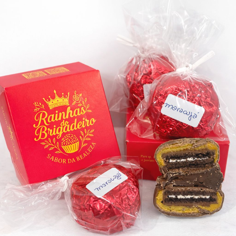 Uma explosão de sabor que vai te surpreender! Nosso brigadeiro é recheado com morango fresco, e envolto em uma casquinha de caramelo de maracujá que equilibra a doçura do doce com um toque de acidez. Uma verdadeira joia para os amantes de doces.