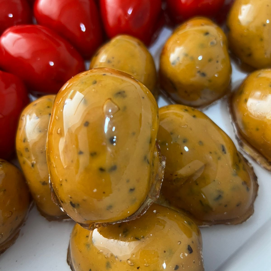 Uma mordida que é pura paixão! Nossa uva verde, fresca e suculenta, envolta em uma camada de brigadeiro de Ninho é envolvida por uma delicada e crocante camada de caramelo. É a união perfeita da acidez refrescante da fruta com a doçura do caramelo. Uma experiência irresistível.