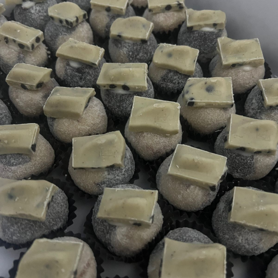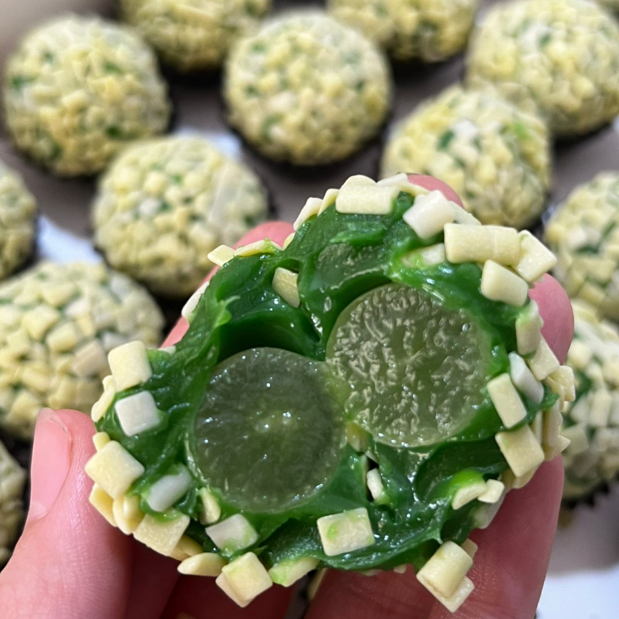 Uma combinação surpreendente de sabores e texturas! Nosso brigadeiro cremoso de pistache, com seu sabor único, envolve uma uva verde fresca e suculenta. Uma joia para os amantes de doces refinados.